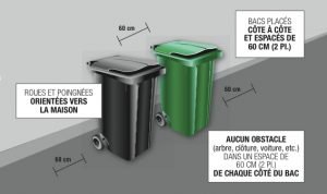- Disposez les bacs en bordure du chemin la veille de la collecte.